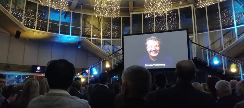 In zijn dankwoord noemde Jeroen specifiek zijn team, dat er voor zorgt dat hij veel AAN zijn bedrijf kan werken, in plaats van IN zijn bedrijf. Daarnaast bedankte Jeroen zijn vriendin Anja van Welie omdat hij, door veel AAN zijn bedrijf te werken, de laatste jaren vele avonden, weekenden en weken van huis is geweest.